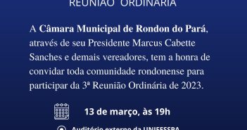 Na 3ª Reunião Ordinária da Câmara Municipal de Rondon do Pará, o vereador Jacir Almeida,…